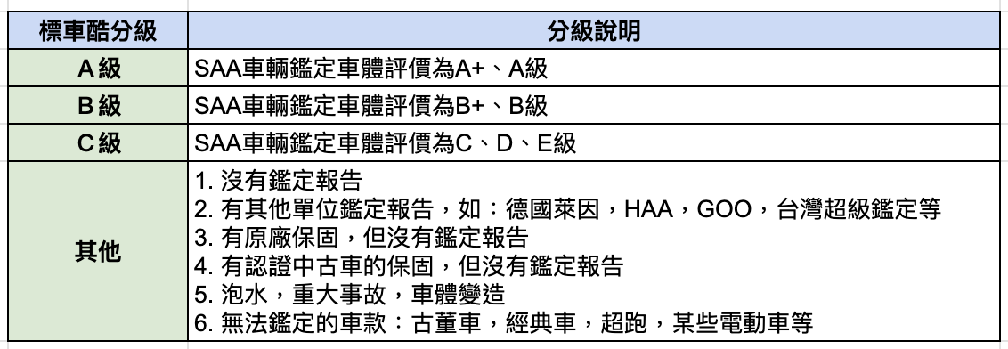 【車輛分級】標車酷車輛分級說明|A、B、C 等級怎麼分?