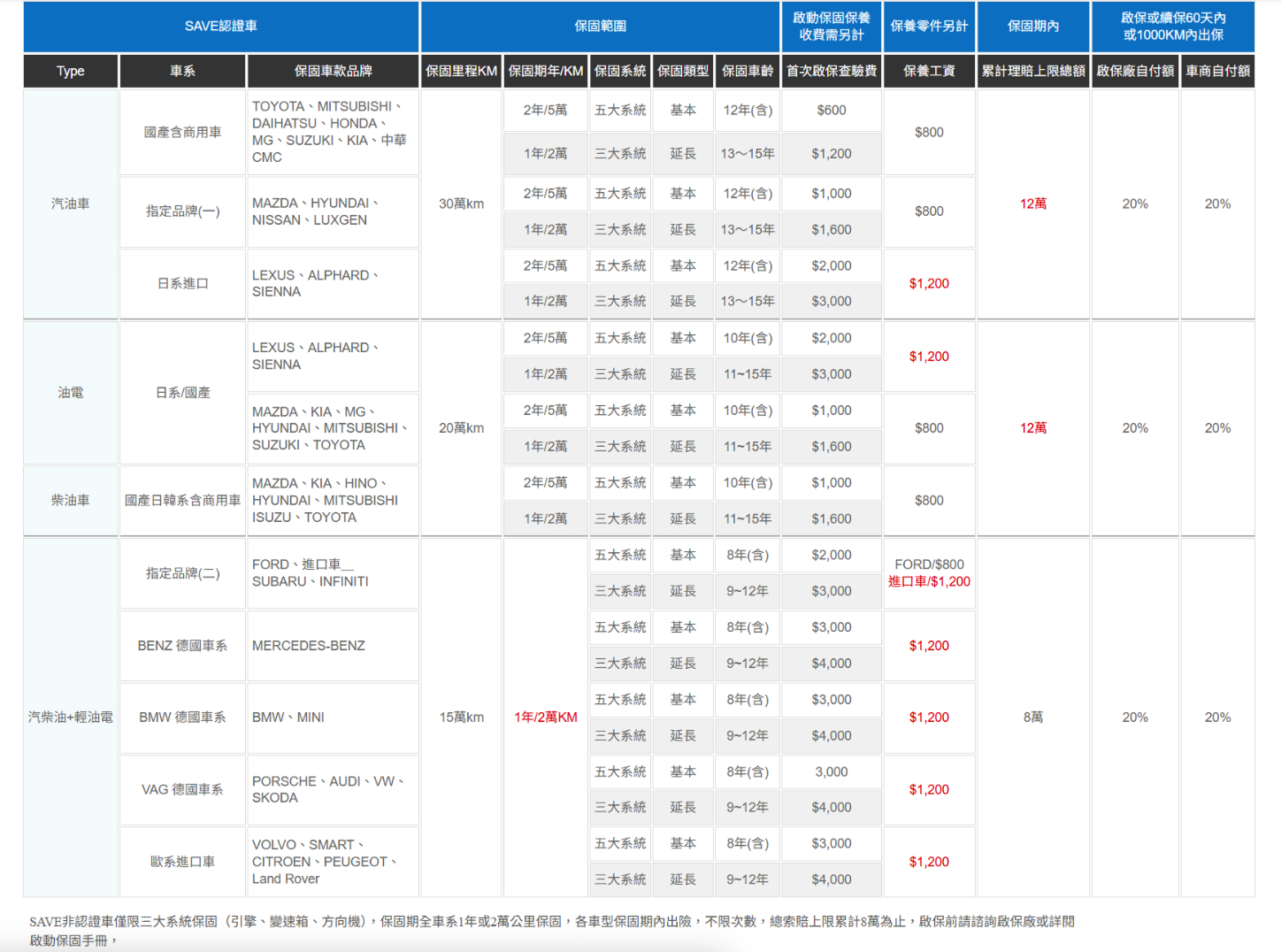 3 限制條件: 保固期限(半年/一年/兩年)與費用,會依品牌、車型、車齡而有所不同。