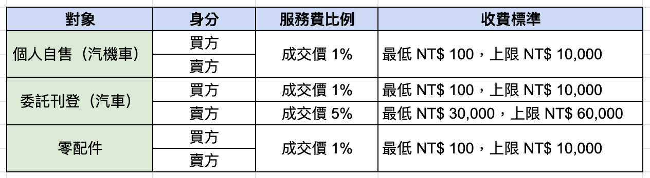1. 若車輛未成交,則不收取任何費用。